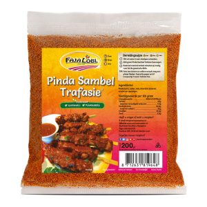 Faja Lobi’s Peanut Sambel Trafasie is a spicy satay sauce made with freshly roasted crispy peanuts. To prepare the original Surinamese satay sauce, simply add water and heat it up. The mixture does not contain any artificial additives and is ideal for a vegetarian diet.
