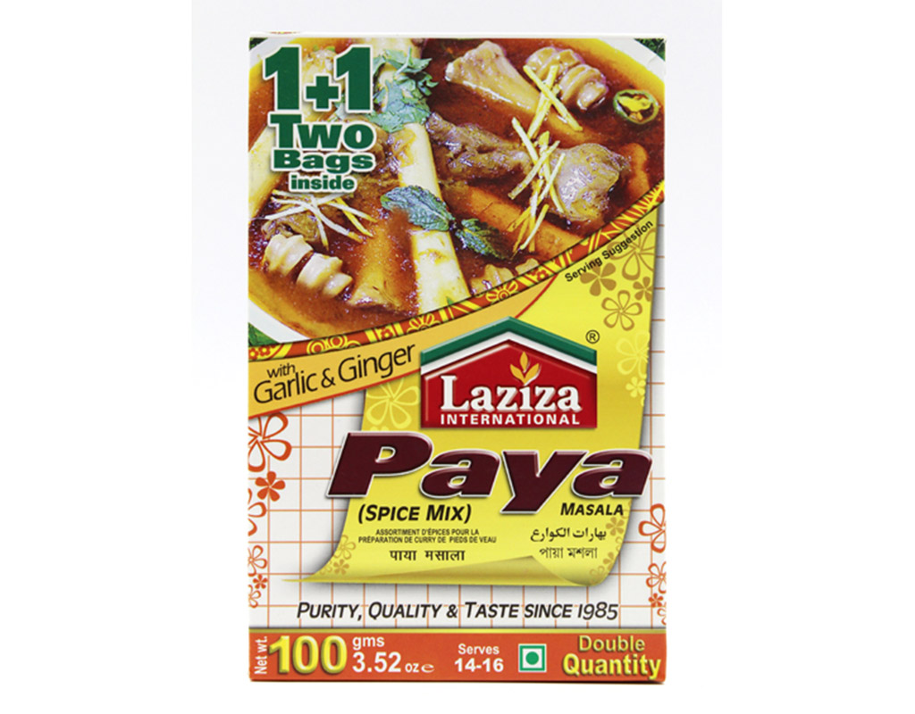 The Laziza Paya Mix contains a perfect blend of rich and aromatic spices so you can enjoy the authentic, traditional taste of Paya curry.