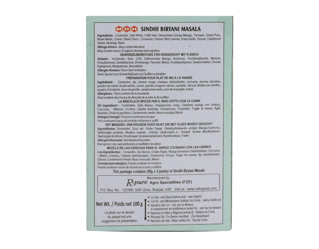 Sindhi Biryanis are traditionally native to the Pakistani province of Sindh and are considered to be particularly spicy. The dishes are characterized by an aromatic mixture of mint, chilli and coriander.