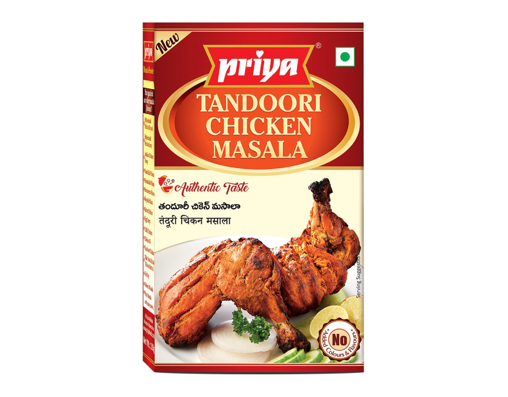 This masala powder is intended for the preparation of one of the most famous Indian dishes: the tandoori chicken. Priya’s masala mixture is made from natural ingredients to give the dish the best taste and quality.